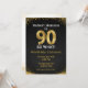 Celebrate a milestone 90th birthday with this stylish and fun invitation! Featuring a bold '90 SO WHAT!' statement in gold foil numbers against a sophisticated black background, accented with sparkling gold confetti. This customizable design is perfect for those who embrace their age with humor and flair. Invite friends and family to an unforgettable 90th birthday celebration with an invitation that truly stands out. Easy to personalize with all your party details.