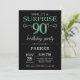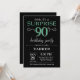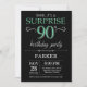 Surpresa 90 de Aniversário com fundo de brilho preto e verde. Chalkboard. Aniversário Adulto. Homens ou Mulheres no Dia Convidam. Qualquer idade.