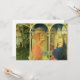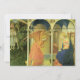 A Anunciação do Prado por Fra Angelico, c.1435. A cena é dividida em três partes, o jardim, o arco do Anjo e o arco da Virgem. Adão e Eva estão sendo expulsos do Jardim do Éden e um raio de luz divina ilumina através da pomba do Espírito Santo, a Virgem, que se curva aceitando seu dever submissa.