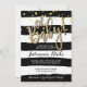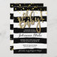 Então, Trendy, este convite apresenta um fundo listrado preto e branco de cor d'água e letras falsas em ouro e confete caindo no fundo.