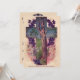 Esta imagem antiquada mostra uma árvore dentro de uma cruz cercada por violetas, lírios e um pássaro. Reimpresso na canvas com verso Bíblia: John 14:6. Belo convite cristão para uma celebração Páscoa.