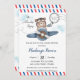Personalize este convite de estilo postal de chá de fraldas bonito com seus detalhes de forma fácil e rápida. Basta clicar no botão Editar usando ferramentas de Design para editar o texto, o texto, o estilo da fonte, o tamanho da fonte, a cor da fonte e adicionar mais ou remover texto. Apresentando um urso bonito montando um avião azul empoeirado com um postmark "é um menino". Itens correspondentes disponíveis no repositório! c) O Feliz Cat Studio .