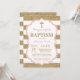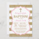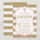 Convite à Batismo Glitter Rosa e Dourada. Batismo Menina. Primeira comunicação. Cristo. Dedicação Infantil. Douradas e White Stripes. Para mais personalização, clique no botão "Personalizar" e use nossa ferramenta de design para modificar este modelo.