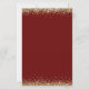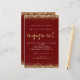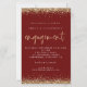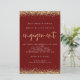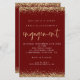 Dourada Glitter Borders Noivado Burgundy Invitation. Um tamanho maior de 5,5" x 8,5" a um preço orçamentário, em um STOCK CARD SEMI GLOSS de 110 lb, excelente de convites, aproximadamente na mesma espessura de um cartão postal, ou um estoque LINEN elegante de 110 lb - para um luxo, ligeiramente mais fino, com um valor de excelente. OBSERVE QUE OS ENVELOPES OPCIONAIS SÃO UM POUCO MAIORES EM TAMANHO A 6,75" x 9" aprox. Este alternativo de tamanho de orçamento também está disponível em outras opções de papel. O papel FELT de 100 lbs é colorido por buff, NÃO branco, então adiciona um toque rústico. O estoque de papel MATTE de 80 lb é branco brilhante, para impressão nítida, excelente para seus menus e programas, enquanto o papel SATIN de 80 lb é fino e leve, ideal para gabinetes. As bordas de confete de brilho falsa em ouro estão no topo e no fundo e também no verso. O noivado é definido num estilo moderno de escrita manual. Personalize facilmente o resto do texto para você.