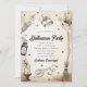 O fundo do estilo de papel de pergaminho com um tema feiticeiro faz um maravilhoso convite para o Festa de Halloween! Vassoura de bruxas, livros feiticeiros, sábio, poção, uma vela esmagadora, tesoura e corda, tudo somam à vibração assustadora. Este convite de festas de fantasia vai receber a atenção da pessoas. Veja mais itens do Halloween em nosso compro, Enchied Finch.
