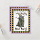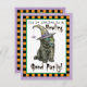 Convide todos os seus amigos para uma festa de boas-vindas neste Halloween com convites mostrando um cachorrinho bonito na Terra Nova vestindo uma máscara verde e um chapéu de bruxa com uma aranha bobo. Tenha um feliz partido de HOWL-interpolação!