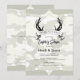 Estilo rústico campestre de chifres de veado "A Caça Terminou" humor divertido design gráfico em um fundo de camuflagem com um toque simples e elegante para o seu chá de noiva/chá de noiva para casais ou o grande dia que se aproxima! Por favor, personalize com o seu próprio texto de acordo com a ocasião ou clique no botão "Personalize" para ir para a ferramenta de design onde você pode adicionar texto, alterar a fonte, tamanho do texto, cor do texto, posicionamento do texto e mais.
