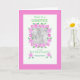 Um bonito convite rosa, branco e verde para ser uma madrinha para você personalizar com uma foto e o nome do bebê, de uma colagem de papel pintada à mão por Judy Adamson.