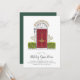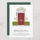 Um convite encantador para festas de férias apresenta uma ilustração de porta vermelha esboçada, flanqueada com arbustos verdes, com o seu tipo de evento personalizado (mostrado com "Casa de Férias Abertas") na letra de um roteiro de caligrafia. Personalize com seus detalhes da festa de Natal embaixo.
