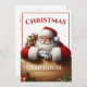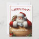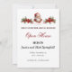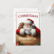 Convide o seu convidado para a Casa Aberta de Natal com este convite. Papais noeis estão relaxando sobre um sinal que diz Open House.