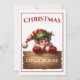 Convide o seu convidado para a Casa Aberta de Natal com este convite. Um Elfo de Natal está relaxando sobre uma placa que diz Open House.