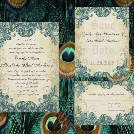 Vintage Paisley Peacock Colors Wedding Invices, Cards de Resposta e mais Cores Vintage Paisley Peacock ou Fuchsia e Convite de Casamento de Paisley de Limão -Paisley Peacock Colors Convites de Casamento, RSVP, Salvar a Data e Direção ou Cartões de Recepção. Convites para Casamento de Peacock Art Nouveau Peacock Bird Parade Casamento - veja mais produtos para aves de capoeira