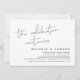 Este é o convite de casamento para a festa de elopement, com design minimalista / script preto minimalista (A Celebração Continua)