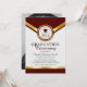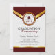 Este design de convite para formatura apresenta um elegante layout formal de cores vermelha, clara e dourada, com chapéu vermelho de graduação e estrelas vermelhas. Personalize o seu próprio quadro de graduação no final do convite.