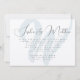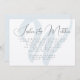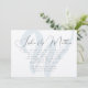 Modelo de convite para cerimônias de casamento únicas e modernas com grande formação inicial. Um simples design com script manual grande para nomes na parte superior das placas planas horizontais. Os nomes de cheio do casal podem ser incluídos no texto impresso, se desejado. Há linhas suficientes para incluir um endereço de local de recepção também. Tema neutro de design com texto preto em papel branco - mostrado em uma atualização de papel texturizado. Os lados inicial e inverso são claros, azuis-cinzas.