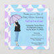 Mamãe está segurando um guarda-chuva. Excelente de convite para bebês. Fundo de pontos azul e roxo. delightful-doodles.com