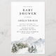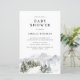 Convite de chá de fraldas de inverno Whimsical. Convide familiares e amigos para o seu evento com este convite de chá de fraldas personalizável. Apresenta ilustrações aquáticas de floresta de inverno de neve, tipografia simples e uma escrita elegante. Personalize adicionando seus detalhes. Este convite para o tema da floresta de inverno é perfeito para os chás de fraldas de inverno.