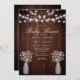 A Corda de Respiração do Bebê acende o convite à Chá de fraldas. O hálito do bebê Floral e as luzes de cordas rústicas contra um elegante fundo romântico de madeira. Perfeito para um país ou chá de inverno. Personalize este design personalizado com seus próprios detalhes.