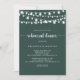 Esta corda rústica ilumina o convite de janto de ensaio verde é perfeito para um evento simples. A design apresenta belas luzes de cordas pintadas manualmente em um fundo verde.