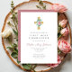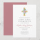 Convite A Cruz Floral Rosa Elegante Primeira Comunhão Sant