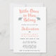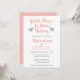 Um belo convite tipográfico para a dedicação de sua garotinha com uma frase do popular hino Jesus me ama. A frase "Os pequenos a ele pertencem" é escrita na letra do script de pincel de pêssego coral, flanqueada por dois elefantes de cinza. Este convite fornece espaço para detalhes de cerimônia e recepção.