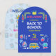 "Citação motivacional 'Escola é legal, vamos dominar'", volta às aulas, 2ª Série, BOAS-VINDAS / GRADUAÇÃO, DESIGN GRÁFICO DE VOLTA À ESCOLA / Decoração de Festa Infantil, Presentes, Colorido, Cartoon. Feliz primeiro dia de aula! Dia dos Professores, Presentes de Formatura para meninos e meninas, Anúncios de Formatura, Vida de Estudante, Legendas de Formatura, Cartão, Mensagens de Professores, Cerimônia de Formatura, Primeira Série, Boas-vindas, Decorações de Formatura, Citações de Formatura. Design moderno com ícones retrô desenhados à mão de materiais escolares, lápis, caneta, pincel, coroa, maçã de mochila escolar, livros, caderno, globo, ônibus escolar e mais, em fundo azul-marinho fofo - para dois lados (fr