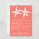 Uma ilustração tirada mão de um casal da estrela do mar. O tema da cor para este convite é um coral alaranjado cor-de-rosa bonito. A disposição do texto e a pia batismal caligráfica do estilo adicionam à sensação do vintage do convite. A parte traseira tem o espaço para a informação do registro. Por favor mensagem mim se você precisa a ajuda com formato este convite. Se você gostaria do convite ser um esquema de cores diferente, talvez para combinar suas cores do casamento, apenas envie um pedido da mensagem.