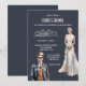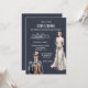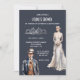 Um quadro de estilo falso de arte prateada ornamentado age como um divisor entre modelos brancos personalizáveis em um fundo azul escuro cinza que enquadra uma bela noiva e noiva vestida em 1920. Ela está vestindo um lote sem dormir cortado elegante de vestido de noiva branca e ele é doado em uma roupa marrom e cinza dupla, com um chapéu de na moda que tem uma banda preta ao redor de sua base. Um pequeno poste de rosas agarrado pela noiva é o buquê ideal para completar esse olhar de safra. O design é adequado para uma comemoração de vinte anos; década de 1920; Gatsby excelente; vintage art deco temed evento ou celebração. São perfeitos para uso profissional e pessoal. A parte de trás é a mesma cor branca de marfim que a da frente.
