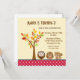 Convite de aniversário das crianças com design animal da floresta e combinação de cor vermelho marrom.