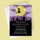 Nossa Bruxa por causa de uma festa de Halloween do Cemitério... é perfeito para a próxima festa de Halloween! Este convite personalizável apresenta uma silhueta de bruxa assustadora voando no céu noturno sobre um cemitério assustador e sobrecarregado com uma lua brilhante de cheio atrás dela.