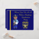 Este Convite à Festa de formatura da Academia de Polícia é decorado na frente com um Patch de Polícia, Policial de Brinquedos, e as palavras "Por favor, junte-se a nós numa Festa de formatura da Academia de Polícia." As costas estão decoradas com policiais de brinquedos.