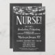 Um divertido convite à festa de formatura de uma enfermeira negra e branca, com luzes brilhantes no topo.