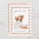 Barato com anúncios de fotos de graduação impressos e convites de festas com modelos simples para personalização. Esta design feminina chic apresenta uma falso borda de folha de rosa-ouro e um fundo de faixa de cor-de-água rosa e cor-de-rosa. Personalize-o com sua foto e adicione seu anúncio de graduação e detalhes da festa no verso. Use as ferramentas de design para alterar as fontes de texto e as cores, adicionar mais fotos e criar uma única design de tipo para o seu formando!