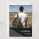Este convite de festa de formatura moderno apresenta a foto do formando na frente, com uma design geométrica simples de cinza preta e escura na frente. O verso contém todas as informações de sua festa.