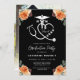 Nursing School Graduation Party Invitation with Graduate photo on the back of the invite. Floral Registered Nurse RN Graduation party invitation with black background and pretty peach, beige and orange watercolor florals. Add graduation party details to invite family and friends to celebrate your nurse graduate.