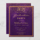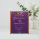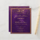 Um convite moderno e na moda para uma festa de formatura. Um fundo roxo profundo e chuva confete de ouro. A cor roxa é irregular. Com uma falsa armação de ouro. Modelo para detalhes de nome e festa. O texto Graduação e o nome são escritos com um script de estilo manuscrito moderno. Ouros. Verso: cor vermelha de fundo, confetti