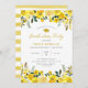 Barato de convites de festa de formatura impressos personalizados. Este design de verão fresco tem uma borda floral de aquarela com flores amarelas brilhantes e verde. Personalize o modelo com os detalhes do evento. O lado inverso tem um padrão de faixa pintada amarela ou use o espaço para adicionar texto e fotos adicionais. Clique em Personalizar para escolher qualquer cor de fundo e editar as fontes e cores do texto para criar um convite de festas de formando exclusivo para sua filha.
