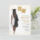 Convite à Festa de formatura na Escola de Enfermagem. Enfermeira Convite para sua filha, sobrinha, mãe, tia, primo ou amigo que está se formando na escola de enfermagem e agora é oficialmente enfermeira. Enfermeira Enfermeira, Convite à Graduação na Escola para Festas de formando celebrando mulheres que acabaram de se formar na escola de enfermagem. Celebre a nova enfermeira registrada com este elegante convite para a formatura de enfermagem! Apresentando um retrato ilustrado de uma mulher de pele escura com cabelo curto. O formando da enfermeira está vestindo um vestido branco na moda, um roupão de graduação preto enrolado sobre o ombro, e um boné de formatura preto correspondente. Ela segura balões em forma de folha de ouro com as letras RN numa mão e um estetoscópio na outra mão. Acentuado com o confete dourado, ele captura perfeitamente a alegria e o entusiasmo de sua grande conquista.
