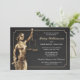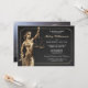 Convite à Festa de formatura na Faculdade de Direito. Lady Justice com folha de ouro falsa. Elegante, classe com fundo de quadro.
