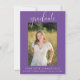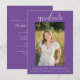 Comemore o formando com este convite à graduação roxo. Adicione uma foto e personalize o texto na frente e atrás para incluir todos os detalhes da sua festa de formatura. Este convite está disponível em diversas cores. Visite minha coleção de graduações para ver todas as opções.