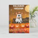 Um convite exclusivo para o Dia das Bruxas com um fantasma de vaqueiro com guitarra, abóboras e tema ocidental. Perfeito para danças de celeiro de Halloween, sanduíches, ou festas assustadoras de temas ocidentais. Personalize todo o texto com seus próprios detalhes ou deixe algum vazio de texto, se preferir.