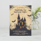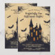 Este convite para festas de Halloween apresenta um design estilo cartoon que é assustador e divertido. No centro, uma casa assustadora assombrada senta-se sobre uma colina, suas características exageradas acrescentando um toque de horror caprichoso. A casa é cercada por árvores assustadoras e torcidas com ramos longos e irregulares. Morcegos com asas cartoonistas, batendo asas voam ao redor da cena, acrescentando à atmosfera estranha e ainda divertida. O fundo é banhado em tons amarelos, em transição de brilho, amarelos fantasmagóricos na parte inferior para tonalidades mais profundas, mais sombrias na parte superior, criando uma configuração vibrante e assustadora. No topo da frente, a legenda diz: "Você é Convidado para uma Noite de Halloween Assustadoramente Divertida!" A letra lúdica e negrito garante que o texto se destaca em relação ao fundo do desenho animado. Abaixo da legenda, há espaço para os detalhes do evento, incluindo a data, hora e local, tudo isso pode ser personalizado para ajustado das suas necessidades. As fontes e cores são editáveis, permitindo que você personalize o convite para corresponder ao tema do seu partido. O verso do convite continua com o tema da matiz amarelada e uma versão sutil e desbotada da casa e das árvores assombradas. Há espaço extra no verso para texto adicional, que pode ser usado para instruções especiais, notas divertidas ou quaisquer detalhes extras como "Figurinos encorajados!" ou "Prepare-se para diversão assustadora!" As informações de RSVP também estão incluídas no verso, permitindo que você especifique os detalhes de contato e um prazo de RSVP. Este convite combina perfeitamente um estilo divertido e cartoonista com informações essenciais do partido, fazer-o ideal para uma "Noite de Halloween Amigável!"