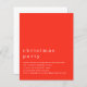 Convite de festas de Natal Vermelho mínimo. Um alternativo de 4,5 pol x 5,6 pol com preço inferior. Disponível em um STOCK DE CARTÃO SEMI GLOSS 110 lb, que é a opção padrão (recomendada para convites), OU um STOCK DE PAPEL THINNER SATIN FINISH 80 lb (ideal para gabinetes). Os envelopes são um extra opcional e são ligeiramente maiores que o tamanho da placa. Vermelho e branco festivo com este design totalmente personalizável. O cabeçalho é maior em na moda em minúsculas com os detalhes abaixo.Personalize facilmente o texto e pode ser alterado para qualquer cor de sua escolha através da opção personalizar mais.