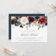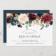 O convite à festa de noivado floral Chic apresenta uma fronteira superior de burgundy marsala, cor-de-rosa-pincel e flores azuis-marinhos, com folhagem botânica e verde-limpas. Personalize com seus detalhes de festa de noivado no moderno roteiro escrito à mão e na letra de sans serif tradicional. Convites invertendo para azul rico marinho.