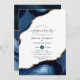 Azul marinho e ouro falso brilho agate festa de noivado de casamento de pedra com tipografia elegante personalizável para seus eventos específicos.
