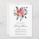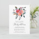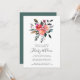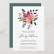 Os convites para festas de noivado florais elegantes contêm uma caixa de cor d'água de flores de pêssego cor-de-rosa e cor-de-pêssego com folhagem botânica verde, tocando seus detalhes de festa de noivado em letras quic off-black. Convites invertendo a verde de água sólida.