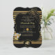 Um cartão de convite para uma festa Dourada-negra, ao estilo art-deco - A textura lúdica de seda dourada passada por dois anéis de casamento e a menina glamourosa no canto com uma corsagem embrulhada sobre a cutelaria dão a esta carta uma boa olhada