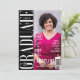 Saia e anuncie sua festa de celebração de formandos com este único design de convite para festas de formatura de cobrir de revistas. O convite de formando é feito para parecer com o cobrir de uma revista na moda, de tendências. O design incorpora um espaço reservado para imagem de recursos de grandes revistas para sua própria foto de formando. O cabeçalho da revista "O Formando" cria o nome da revista. Você pode mudar facilmente a cor do cabeçote de máscara para poder escolher qual deles funcionará para sua foto. (basta clicar em Personalizar para acessar as camadas) Os detalhes da parte do formando restantes são organizados sobre o cobrir, como um texto de chamada de revista. O reverso deste design de convite inspirado nesta revista apresenta um layout de colagem de cinco fotos para exibir fotos adicionais do formando no verso. Você pode personalizar o tamanho do texto, a cor do texto, a fonte e o layout para a sua própria preferência de design pessoal.