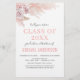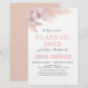Personalize este Boho Blush Pink, White, Modern e Elegante Na moda Watercolor Primavera de 2023 Convite para Festa de formatura sobre fundo branco com sua mensagem e detalhes. Este convite chico inclui rosa flores e capim-de-pampas moderno com tipografia de guiões bonitinha e elegante para o Segundo grau especial ou Formando de faculdade.