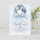 Celebrate the arrival of your little bunny with our boho-style design featuring a cute bunny sleeping on clouds in shades of navy and light blue, all set against a background of hand-painted watercolor clouds. The design features modern, minimalist typography in navy and black, and a striped pattern in a blue tone on the back. The design can be filled with your celebration details. Don't hesitate to purchase this cute bunny-themed product for a boy's baby shower.